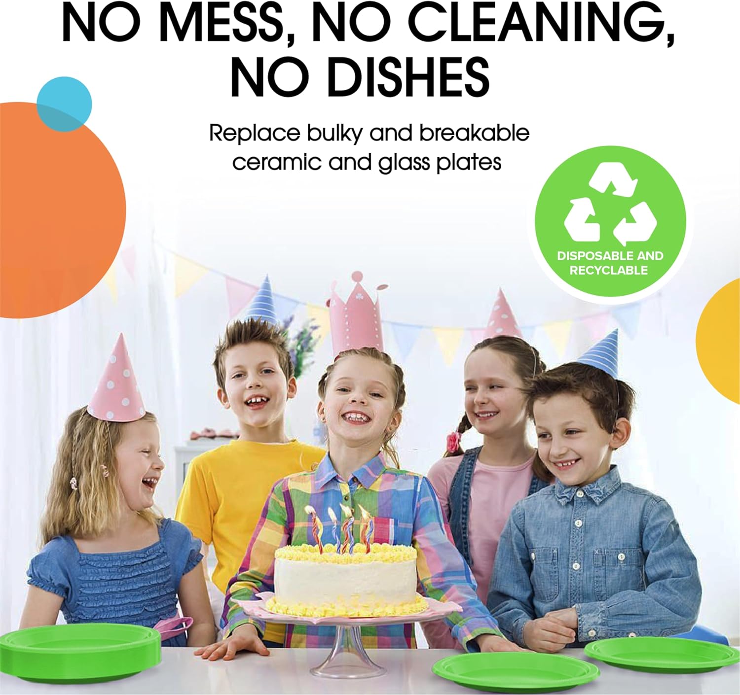 • Health & Safety: Our lime green plastic plate set is made with food-safe materials, ensuring the health and safety of your guests. Whether it's for a birthday party or a picnic, you can trust that these disposable plastic plates meet the highest standards of hygiene, providing peace of mind for you and your loved ones.