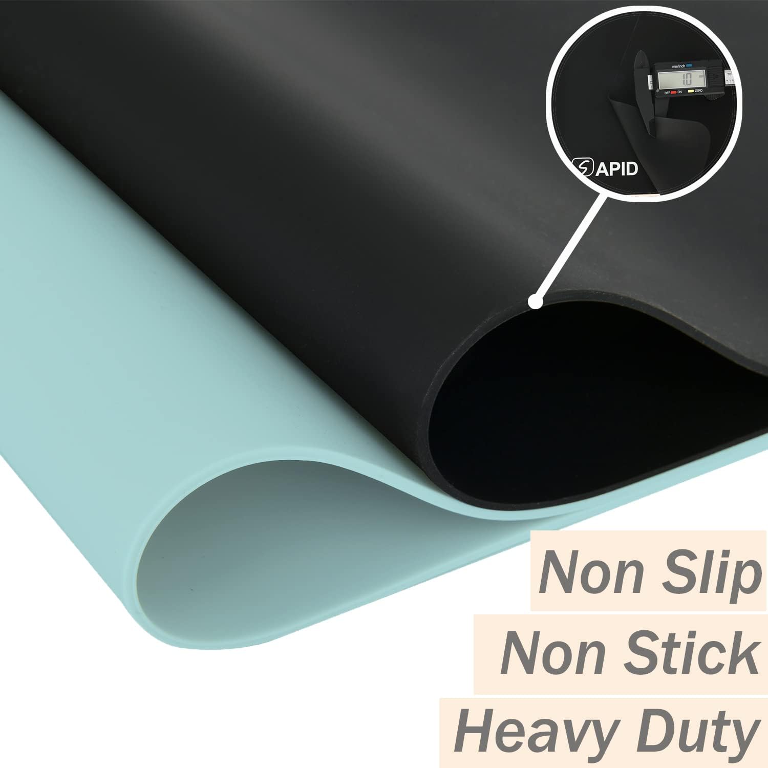• Non Slip and Nonstick : With matte design on both sides, our silicone countertop protector mat won't slide around on the countertop or other surfaces, meanwhile, won't stick together itself when folded like other smooth surface silicone table mats. Different from other flimsy silicon mat, our 1MM thick silicone mats are more durable and thick enough to lay flat and stay in place without slipping.