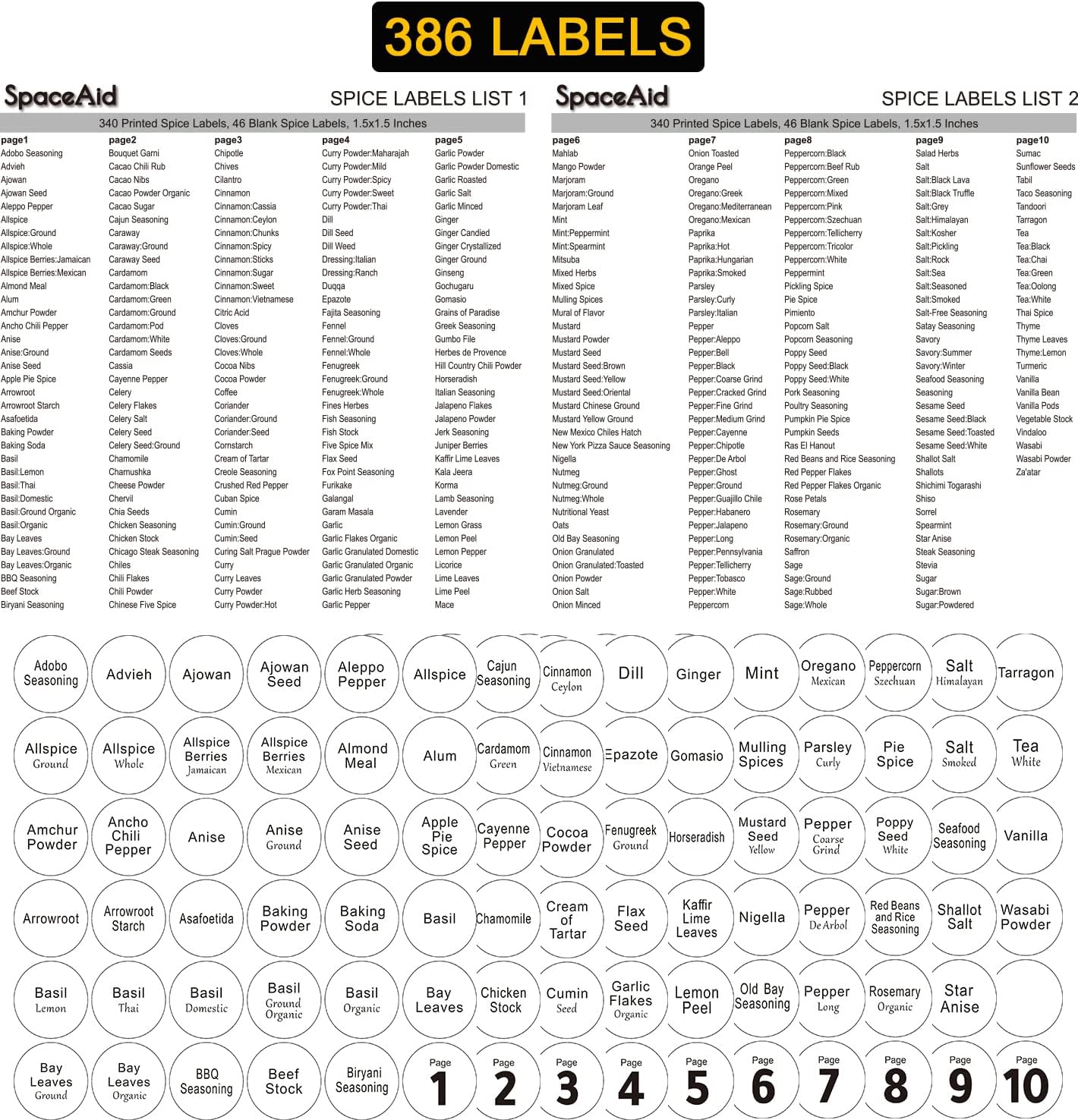 • 386 Waterproof Spice Labels - Made of waterproof and tear-resistant material to be removed and repositioned; 340 preprinted Spice labels cover both common and exotic spices, 46 blank labels with 1 chalk marker for writing on labels and can be wiped and rewritten; In case you cannot find the labels you want, the numbered catalog will help you