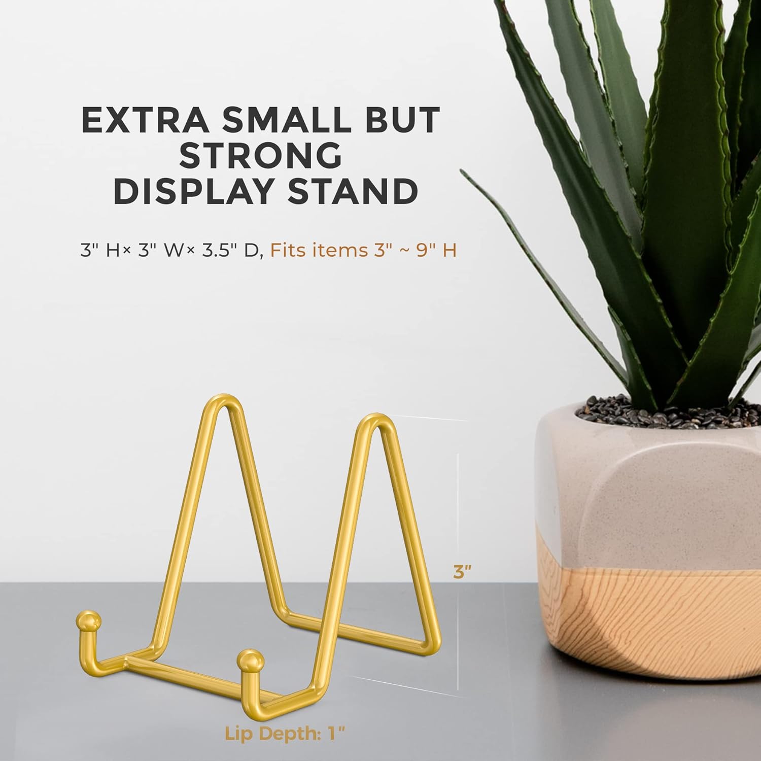 • SMALL BUT STURDY DESIGN: - This plate display stands has a matte gold powder-coated finish and wrought iron construction, strong enough to hold decorative plates, painted tiles, plaques, photo frames, platter, pictures, book, canvas, dishes, etc.