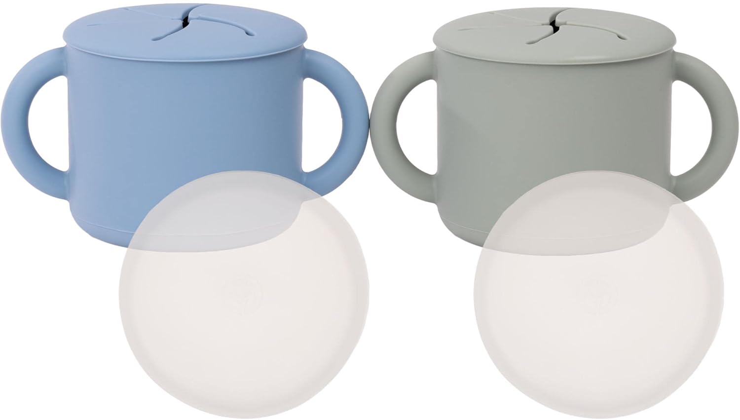 WeeSprout Snack Containers, Food Grade Silicone Cups, Spill-Proof Tops For Toddlers and Babies, Premium Hard Plastic Travel Lids, Dishwasher Safe, Set of 2 Snack Catchers