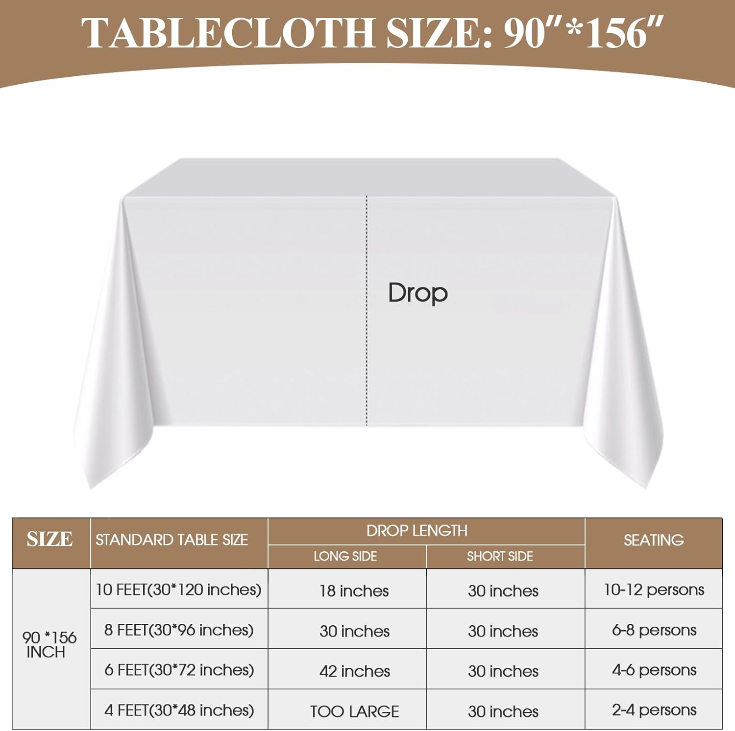 • Suitable Size: This 90*156 inch tablecloth from Aocoz is suitable for rectangular tables of 6ft and 8ft, please carefully measure the size of your table before purchasing to avoid buying an unsuitable tablecloth
