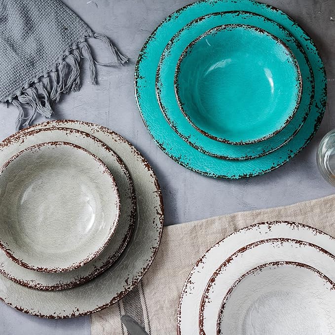 • MELAMINE DINNERWARE: Service for 4, 12-piece dinnerware set includes 4- 11" dinner plates, 4- 9" salad plates and 4- 7" (18 oz) cereal bowls