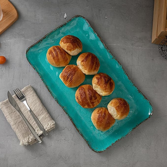 • SAFE and DURABLE MATERIAL: This rustic dinnerware set is made of 100% melamine, which is BPA free, safe for food use, break and scratch resistant, more sturdy than ceramic and lighter in weight