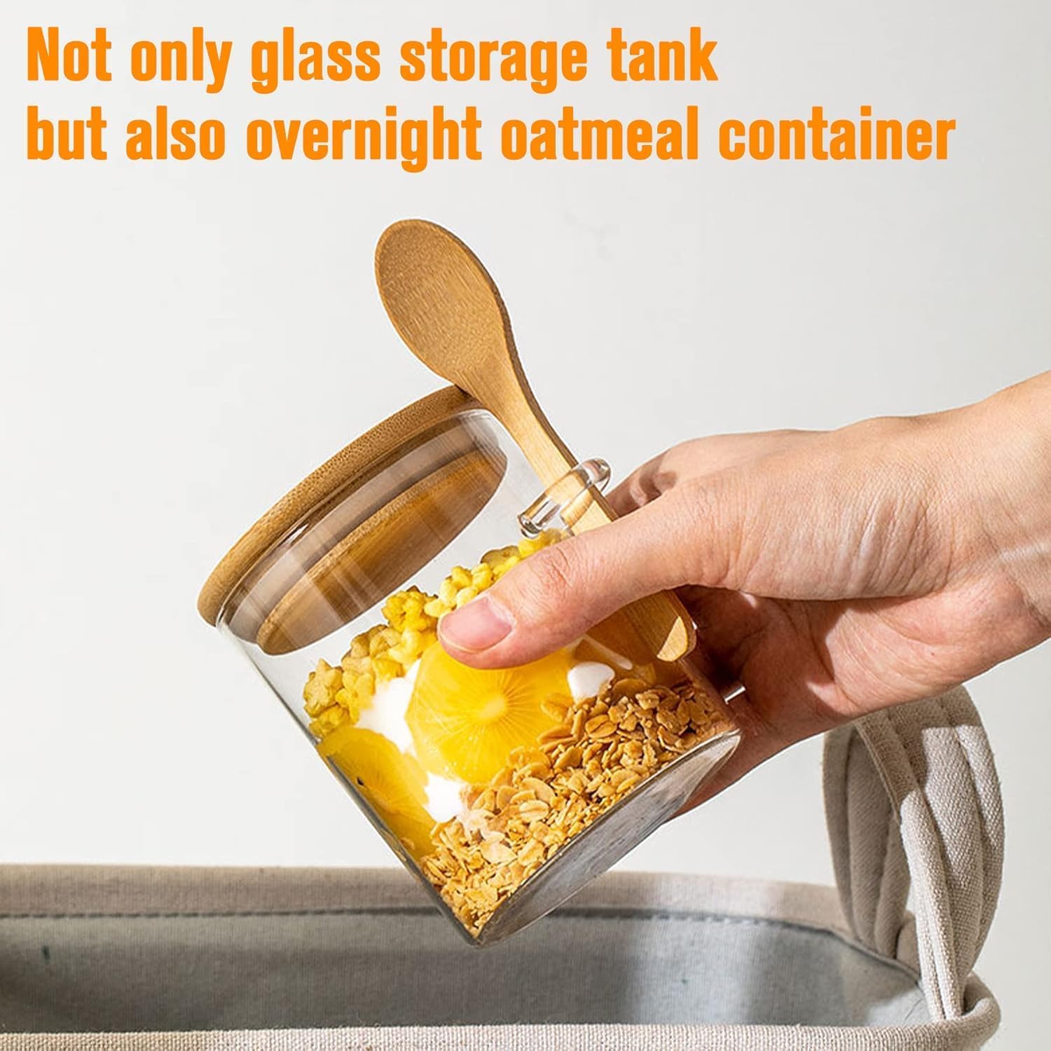 • Versatile Overnight Oats Jars: 4 pack 18.2oz glass jars,Versatility Glass Containers Suitable for everyday home or office use. Airtight glass jars are great for storing all kinds of food, can hold just about anything, and are perfect for coffee beans, nuts, oats,sugar, cookies, candy, rosebuds, snacks, bath salt and more. Store it in a clean, tidy, beautiful and space saving place, it is the best gift for family, friends.