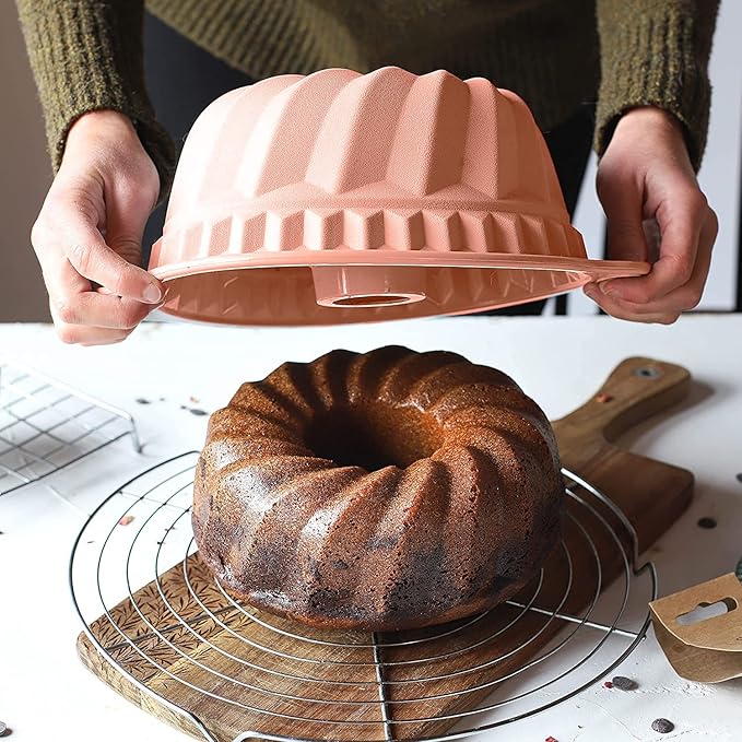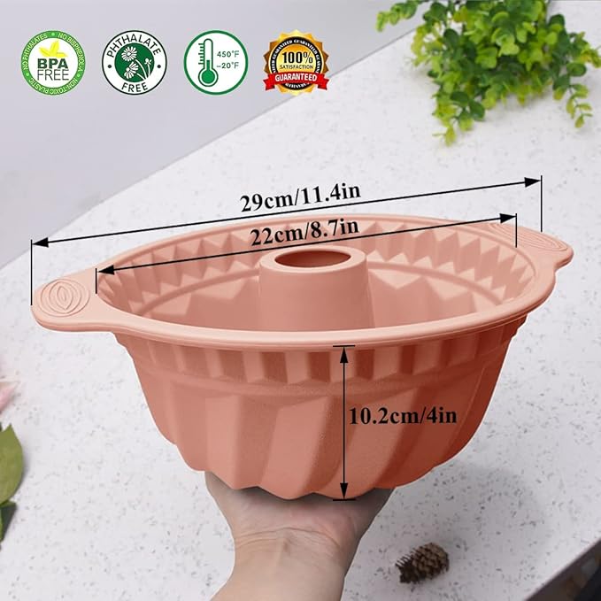 • 【Multi-purpose】: This mold is very suitable for making fluted cakes, pumpkin bread, pie, jelly and so on. Temperature range of -40°F to 446°F (40°C to 230°C), making our silicone baking mold ideal for ovens, microwaves, dishwashers, air fryer