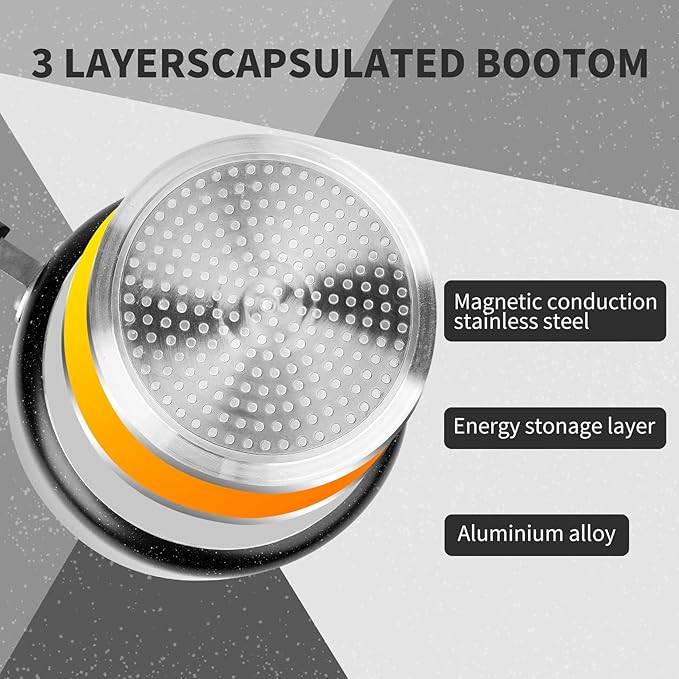 • [Multiple Layer Non Stick Coating]Premium non stick interior featured exceptionally durable, double coated, and scratch resistant,which is ideal for easy cooking,re-heating vegetables,sauces,pasta or soup.Easy to clean for superior nonstick performance,just clean by soft sponges.
