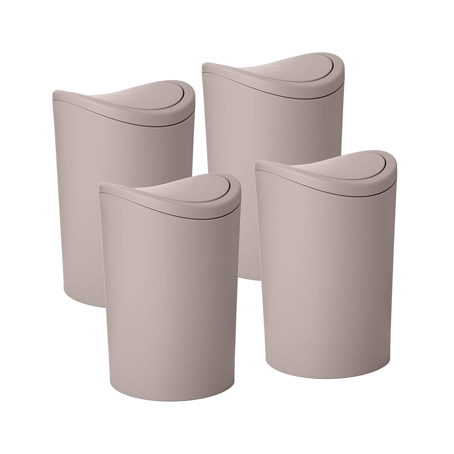 Superio Small Bathroom Trash Can with Lid, Modern Mini Waste Bin with Swing Lid (1 1/2 Gallon, 6 Liter) Plastic Garbage Can for Kitchen, Bathroom, Bedroom, Office, Under Desk (4, Taupe)