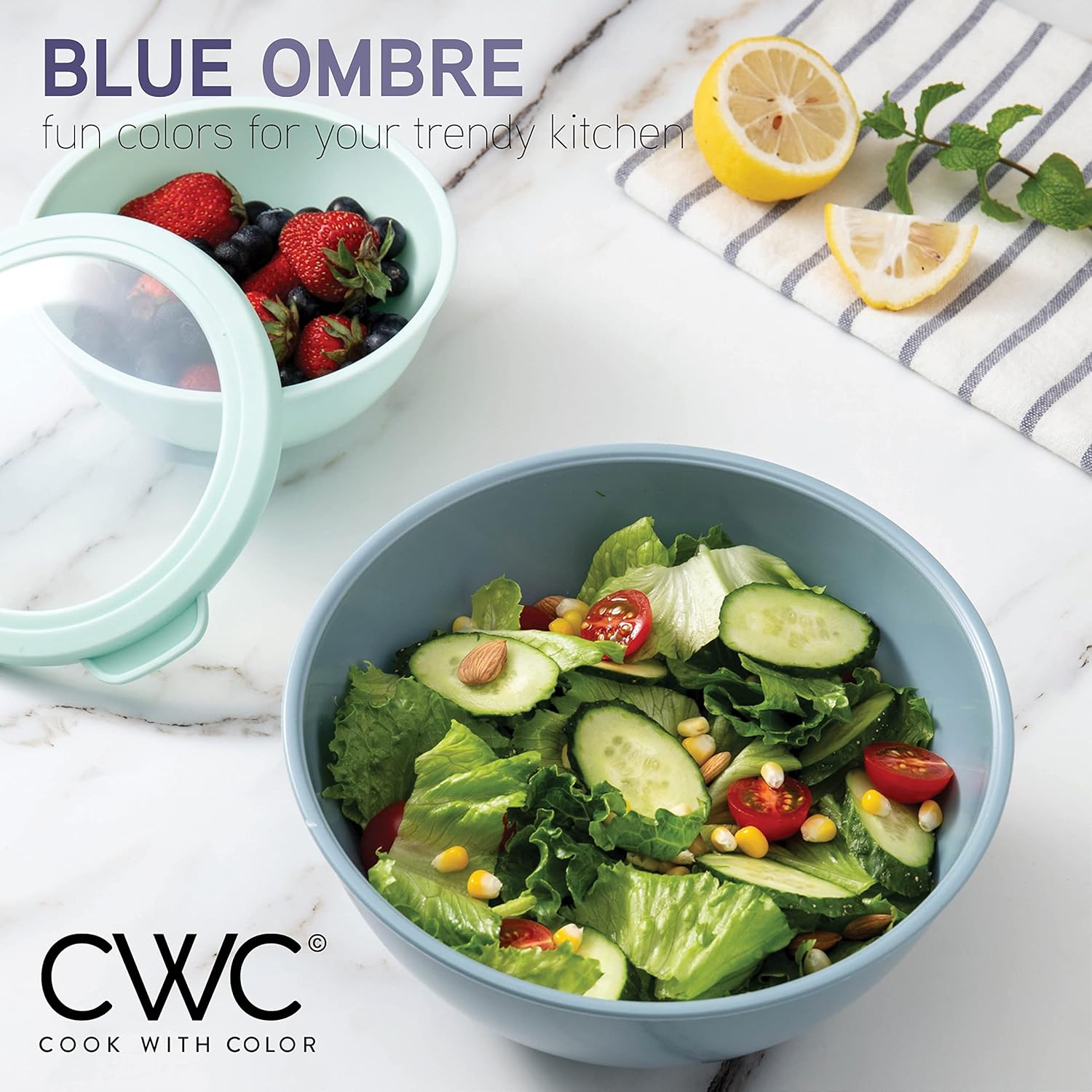COOK WITH COLOR Mixing Bowls with TPR Lids - 12 Piece Plastic Nesting Bowls Set includes 6 Prep Bowls and 6 Lids, Microwave Safe (Blue)