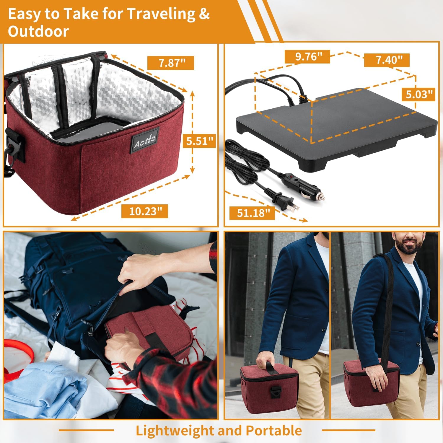 Aotto Portable Oven, Electric Lunch Box Food Heater - 12V/24V/110V 3-in-1 Car Food Warmer - Heated Lunch Box for Adults - Cook, Reheat & Keep Meals Warm for Car, Truck, Travel, Work, Home - Red