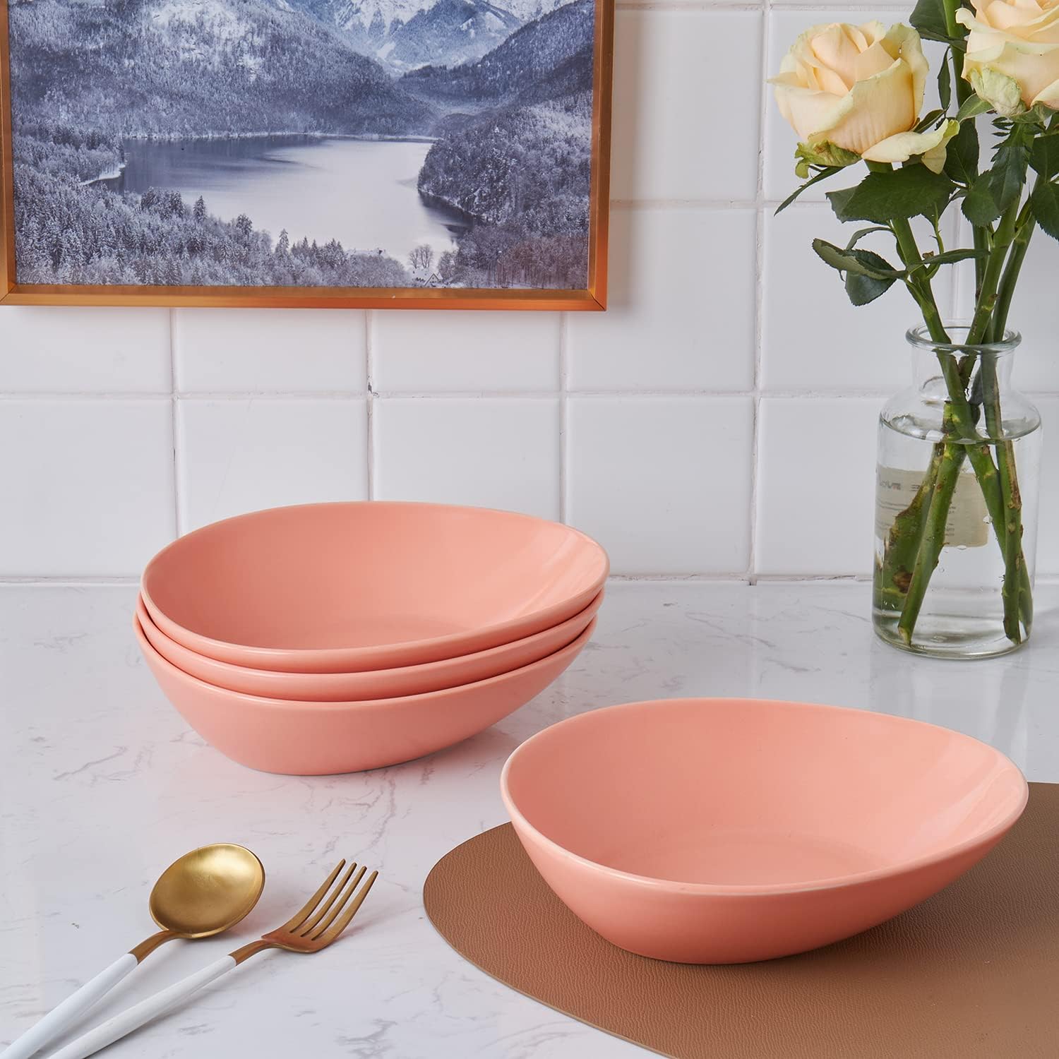 Stone Lain Delilah 8-inch Bowl 6-Piece Dish Set, Porcelain, Peach