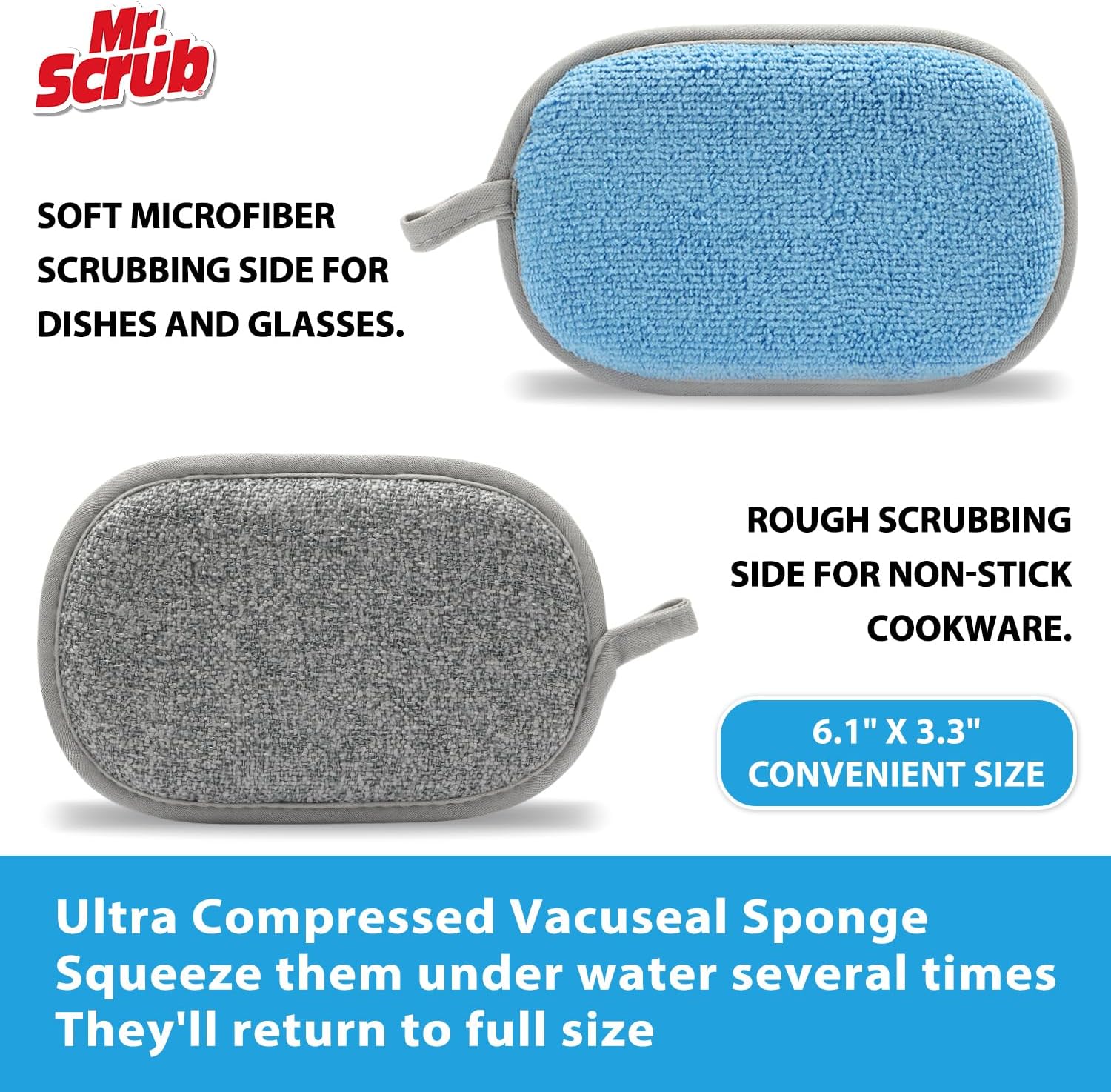 Sponges Kitchen Dish Sponge for Washing Dishes Cleaning Kitchen, All-Purpose, 6 Pack, Non Scratch, Rough Scrubbers Side for Non-Stick Cookware, Soft Microfiber Scrub Side for Dishes, Mr. Scrub