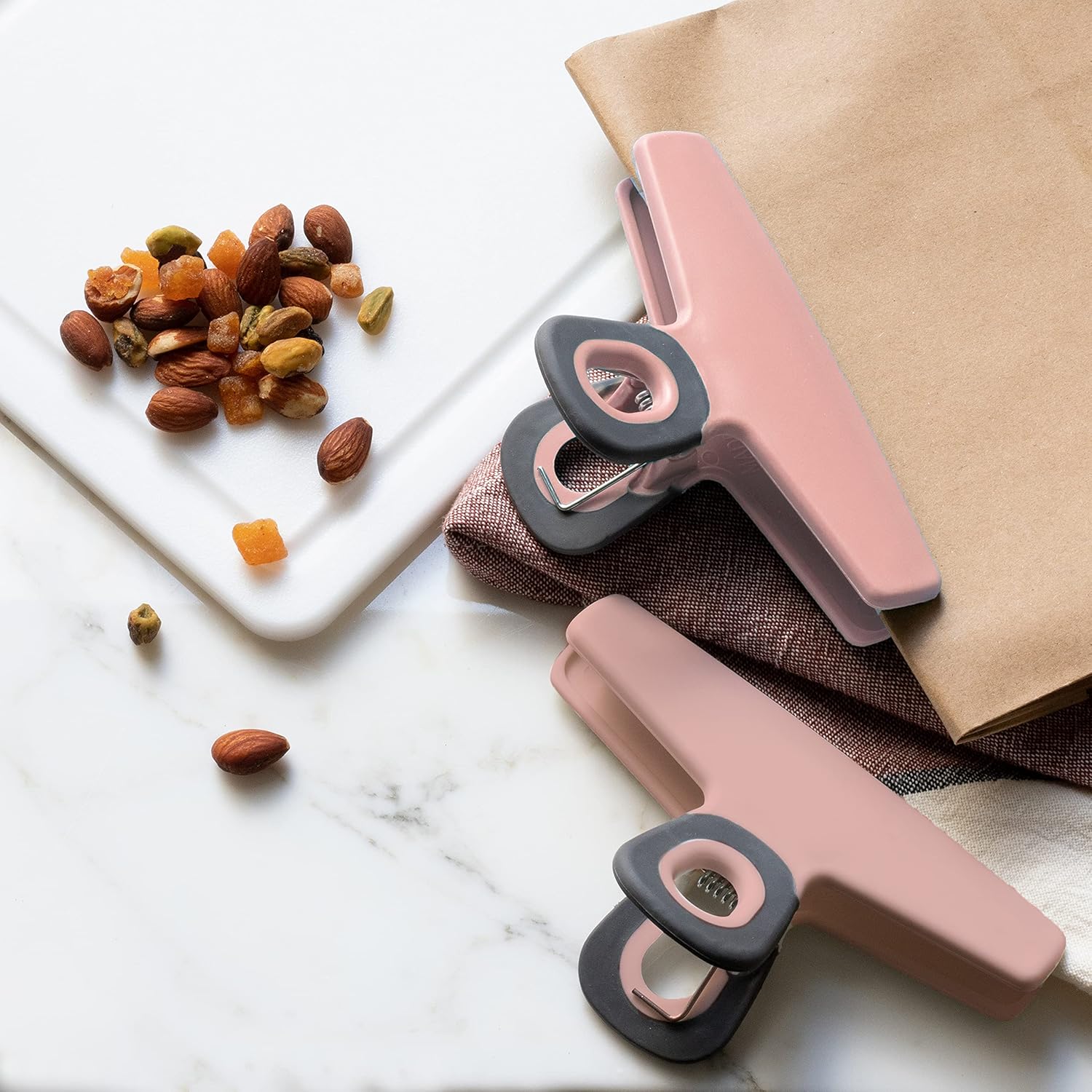 • Set includes 8 pink rubber bag clips that are 5 inches wide - the great size clip for extra big bags of chips and food.