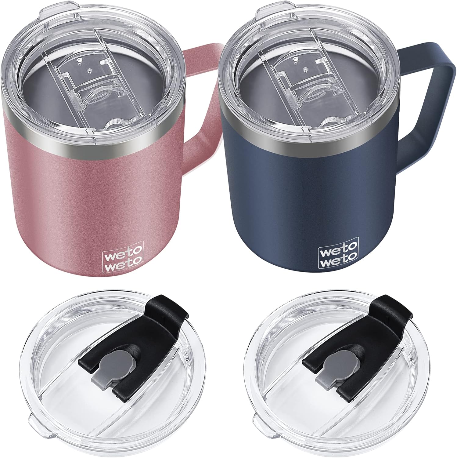 WETOWETO 14 oz Coffee Mug, Vacuum Insulated Camping Mug with Lid, Double Wall Stainless Steel Travel Tumbler Cup, Coffee Mugs Outdoor, Navy Blue & Rose Gold 2 Packs