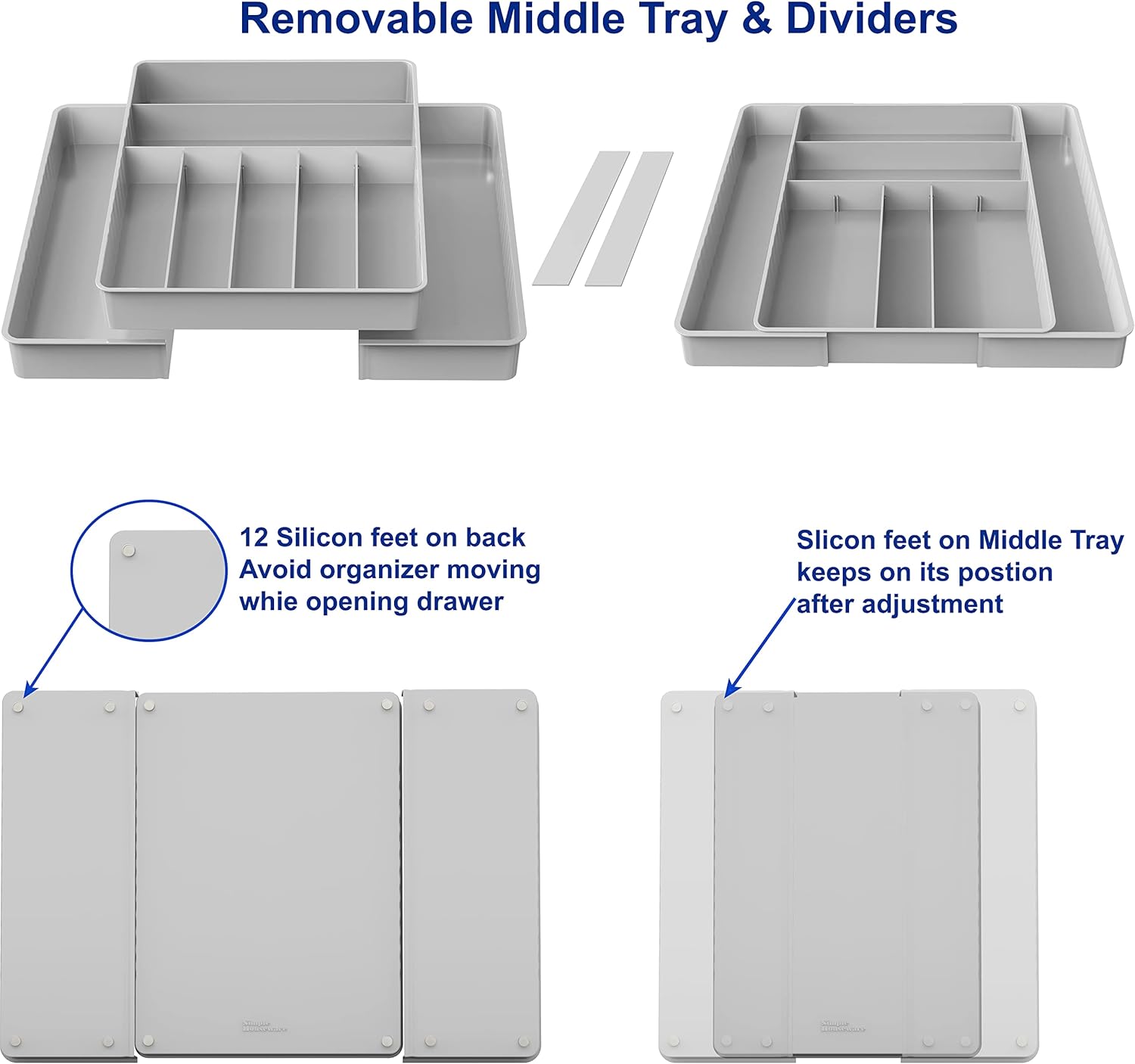 • ✅ Expandable & Adjustable Width: Fits most modern drawer sizes, expands easily to maximize space; perfect for silverware, cooking tools, and gadgets