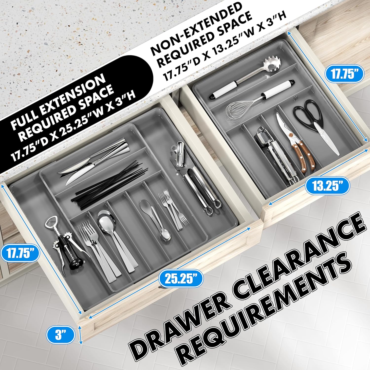 • ✅ Extra Large Capacity with Precise Fit: Measures 17.25'' deep x 12.9'' wide x 2.25'' high – ideal for wide and deep kitchen drawers needing more organization space