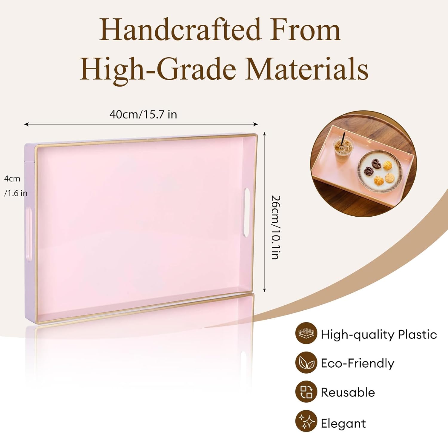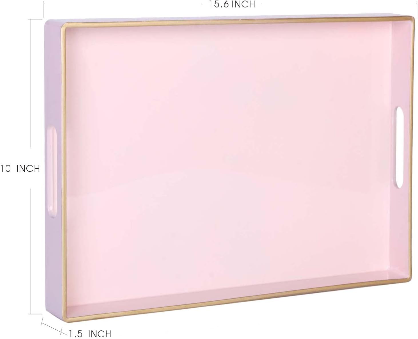Zosenley Decorative Tray, Rectangular Plastic Tray with Handles, Modern Vanity Tray and Serving Tray for Bathroom, Kitchen, Ottoman and Coffee Table, 15.6” x 10.2” (Pink)