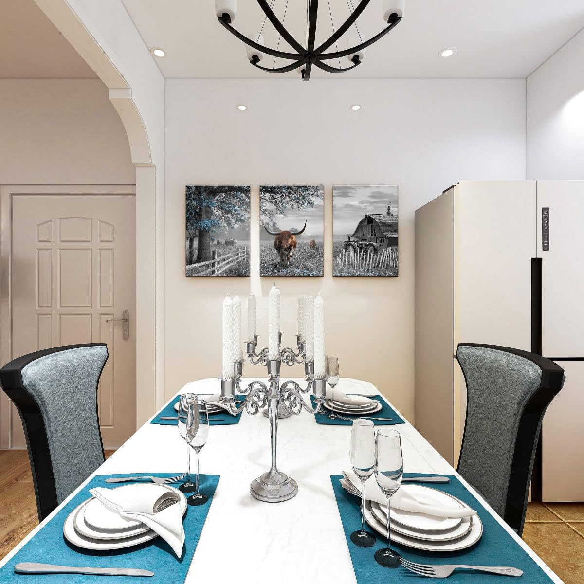 yiijeah Western Wall Decor - Rustic Blue Tree Brown Cow 3 Piece Wall Art - Farmhouse Black and White Picture Canvas Artwork for Walls - Field Scenery Wall Art