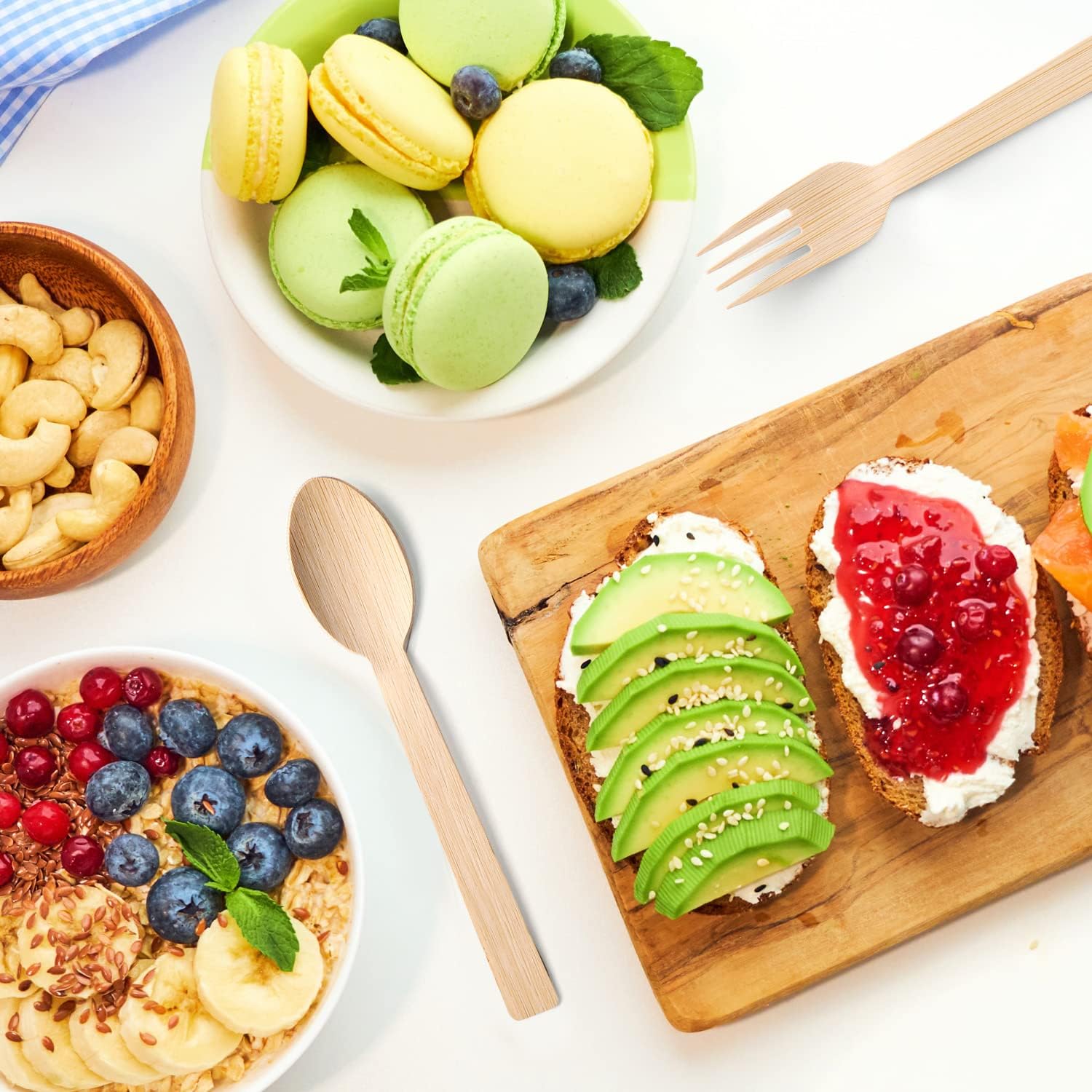 • ✔[100% Natural] Enjoy your food with 100% Bamboo Compostable Utensils made in a certified facility. This renewable resource is grown and harvested to reduce deforestation. No BPA or Toxic Chemicals that may be found in disposable plastic utensils. TREE FREE means you don’t have to promote cutting down trees to provide your guests elegantly durable wooden utensils. Perfect for most breakfast, lunch and dinner settings.