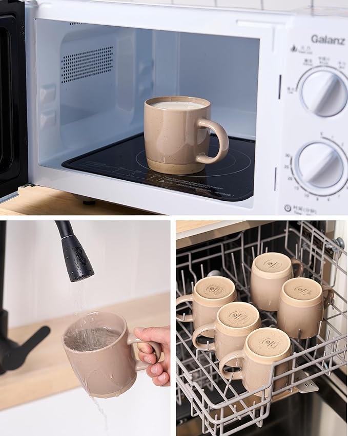 • 【WITHSTAND THE TEST OF TIME】These coffee mugs are made of organic and natural clay, fired at 2340℉ for 13.5 hours to make it sturdy,reliable and chip-resistant for long-term use.