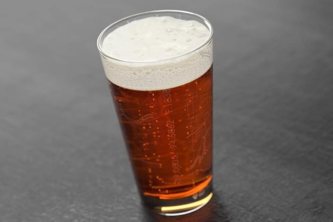 • 16 oz with heavy base and sparkling clarity: Our premium glassware is perfectly weighted and features the unmatched precision of laser engraving for an elegant table top appearance. The perfect beer glass for your favorite IPA, ale, lager, or craft beer!