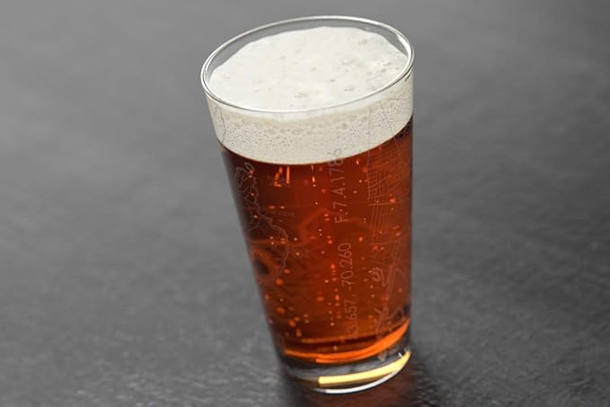 • 16 oz with heavy base and sparkling clarity: Our premium glassware is perfectly weighted and features the unmatched precision of laser engraving for an elegant table top appearance. The perfect beer glass for your favorite IPA, ale, lager, or craft beer!