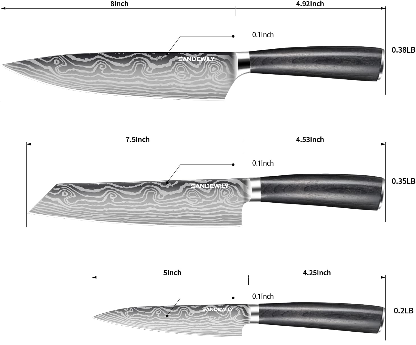 3 Piece Japanese Knife Set,Ultra Sharp Chef Knife Kitchen Cooking Knife Paring Knife German High Carbon Stainless Steel with Sheaths Wooden Handle for Home Outdoor Gift Idea