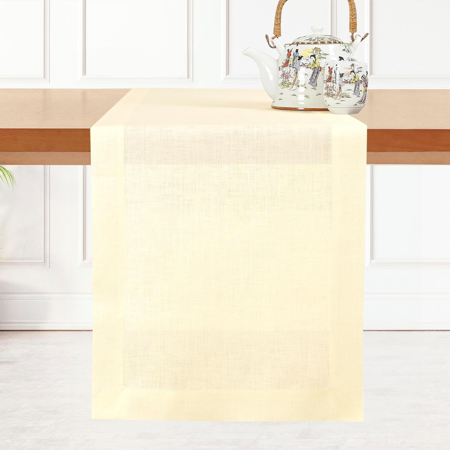 • PREMIUM EUROPEAN LINEN - This vanilla cream table runner is made from 100% European flax linen, not blended with cheaper materials like cotton or polyester. Pure linen is an exceptionally durable midweight, hypoallergenic (good for people with allergies) fabric which outperforms cotton in tensile strength and abrasion resistance.