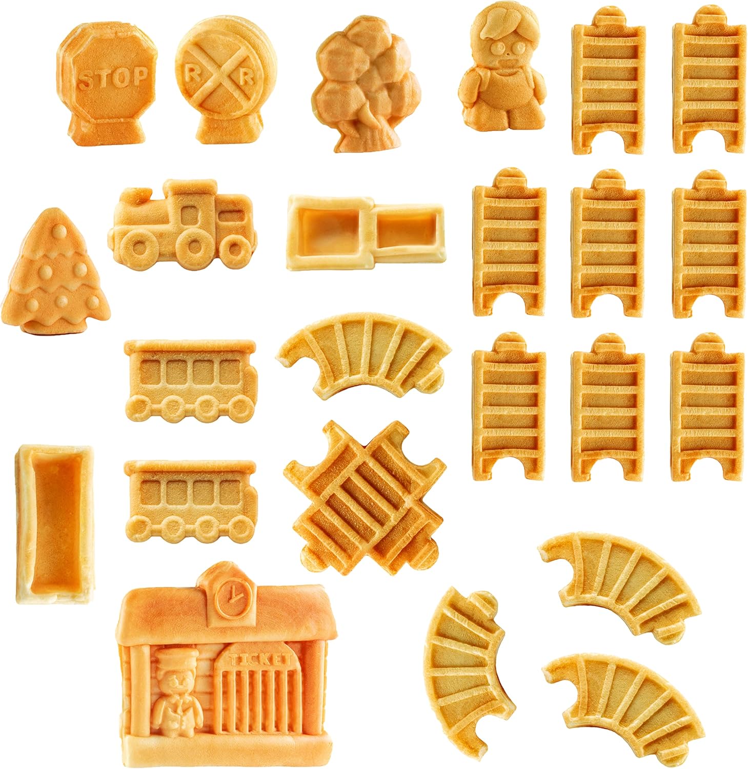 • Build Your Own Breakfast Train – Includes 4 removable plates to construct wagons, tracks, stations, and signs—perfect for fun, creative waffles or pancakes the whole family will love.