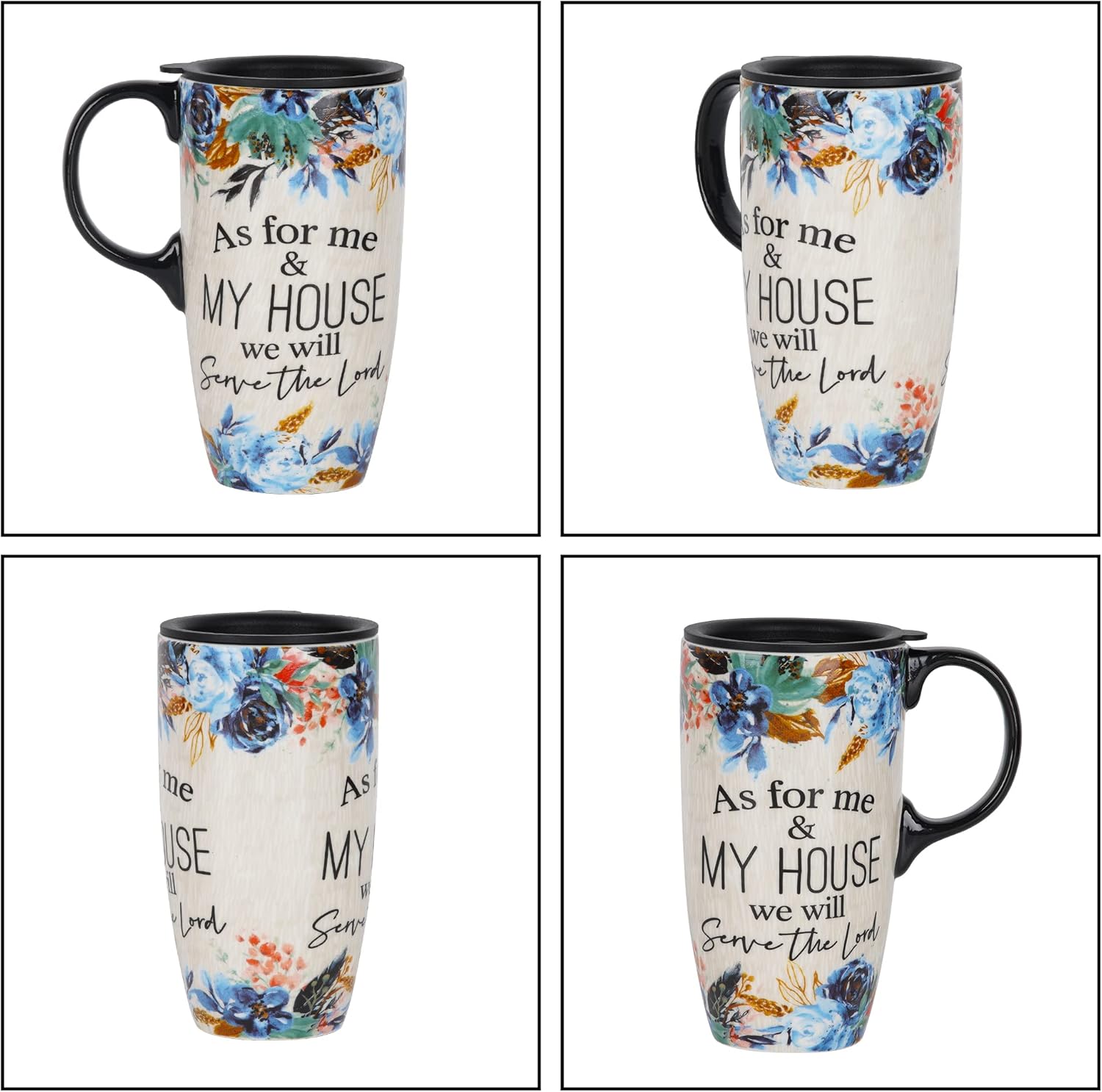 Topadorn Ceramic Travel Mug with Lid and Handle for Coffee Lovers, Splash Resistant Lid - To Go Tumbler for Car Cup Holder, 17oz Floral Art Tea Mug