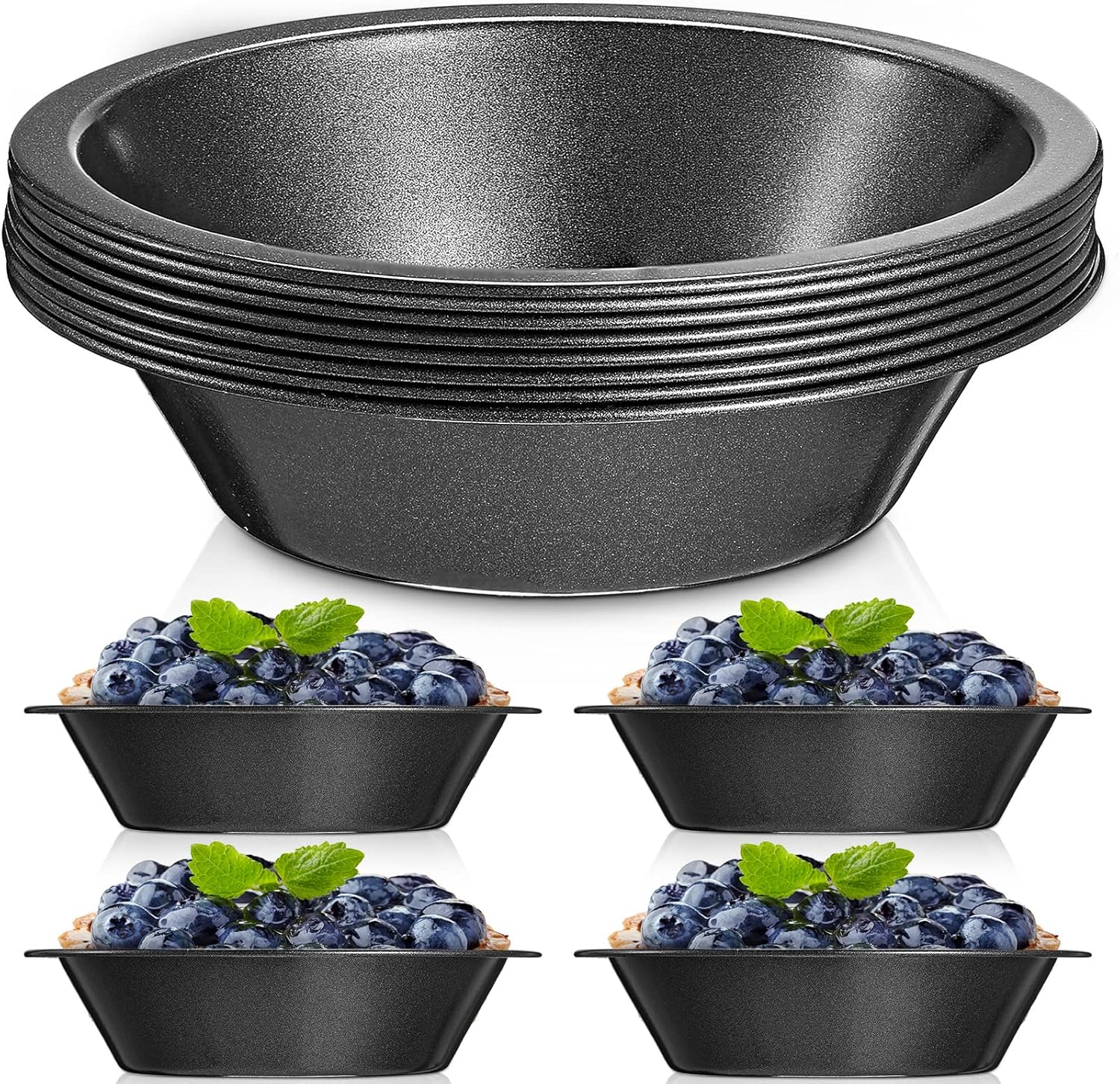 • Abundant Quantity: what you will receive are 8 pieces of 4 inch mini pie pans in black; Large quantities and moderate size will enable you to use them for various baking and cooking requirements daily or on holidays, or you can share them with other people