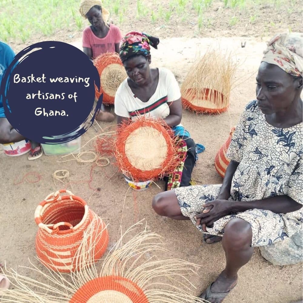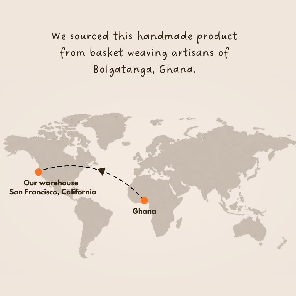 • AUTHENTIC DESIGN: Handcrafted Bolga basket from Ghana featuring traditional pot shape with beautiful turquoise blue and natural weave pattern