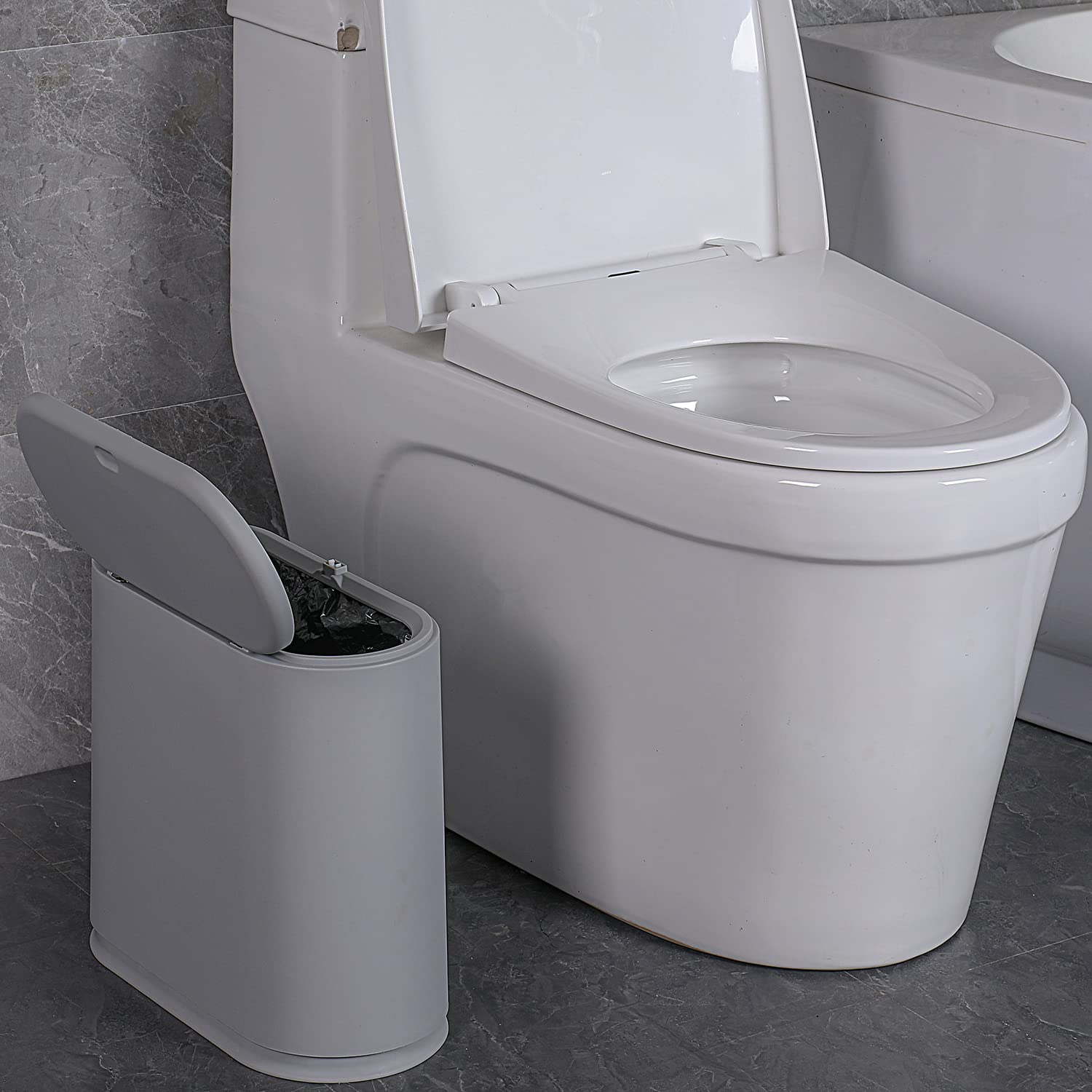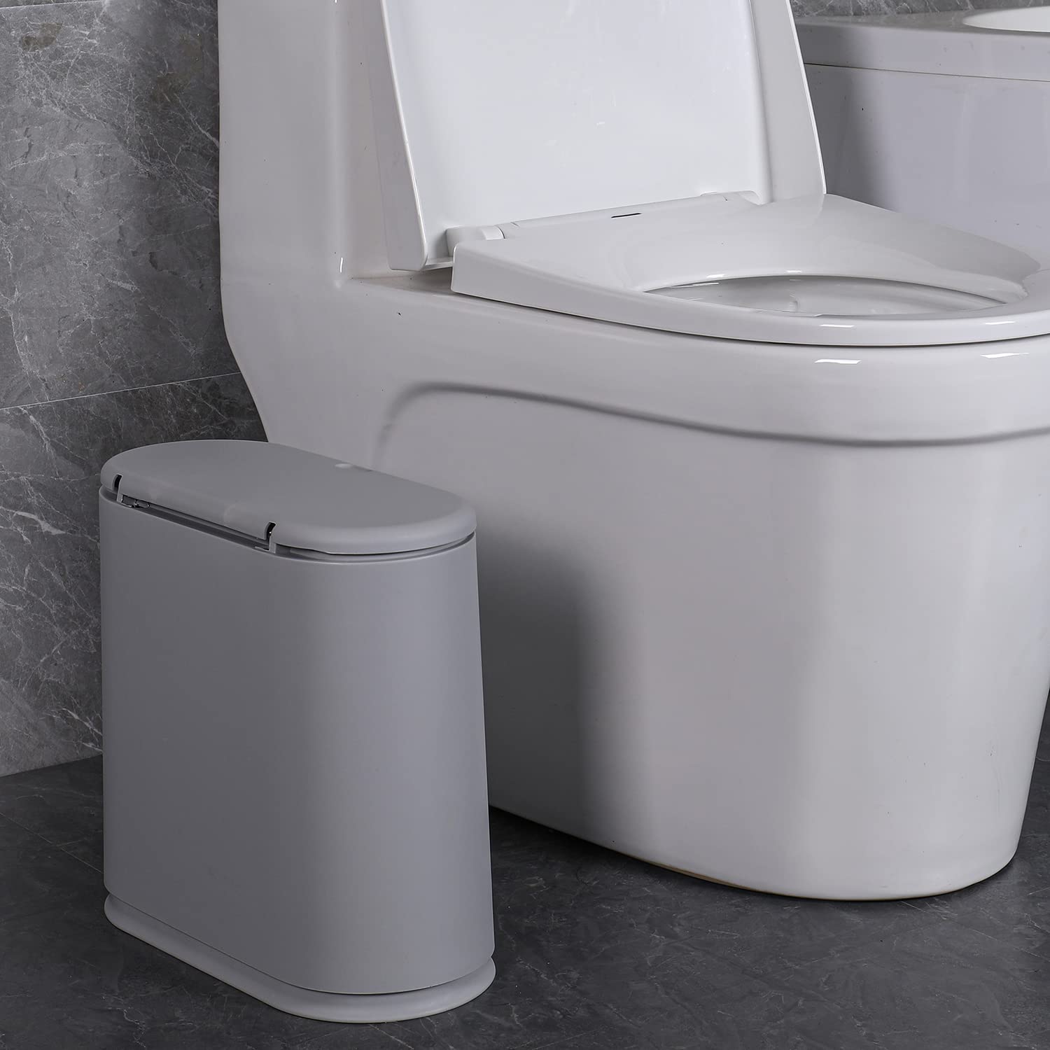 Sooyee 10 Liter Rectangular Plastic Trash Can Wastebasket with Press Type Lid,2.4 Gallon Garbage Container Bin for Bathroom,Powder Room,Bedroom,Kitchen,Craft Room,Office,(Gray)