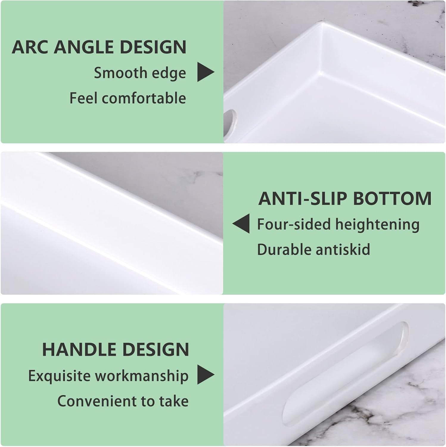 Serving Tray with Handles-10x15Inch White Melamine Modern Serving Platters,Serving Wine,Coffee,Breakfast/Kitchen Countertop Tray/Makeup Drawer Organizer/Vanity Table Tray/Decorative Tray