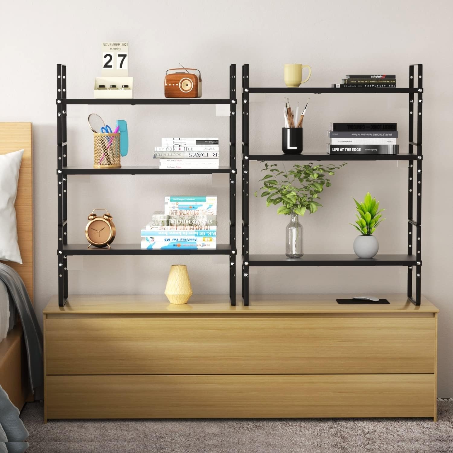 • 【DURABLE &STRONG】:Cabinet Shelf Organizers is made of sturdy metal with anti rust coating,there is a metal support rod in the middle of these cabinet shelves,it can ensures the shelf didn’t get collapse when you place some heavy items on it,the screws at the metal rod are can be loose or tight to expand the countertop shelves