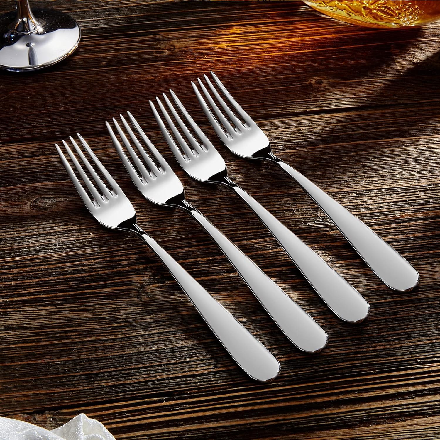 KEAWELL Premium Louise Forks, Set of 4, 18/10 Stainless Steel, Forks Silverware with Round Edge, Exceptional Mirror Finish, Dishwasher Safe (8" Dinner Fork)