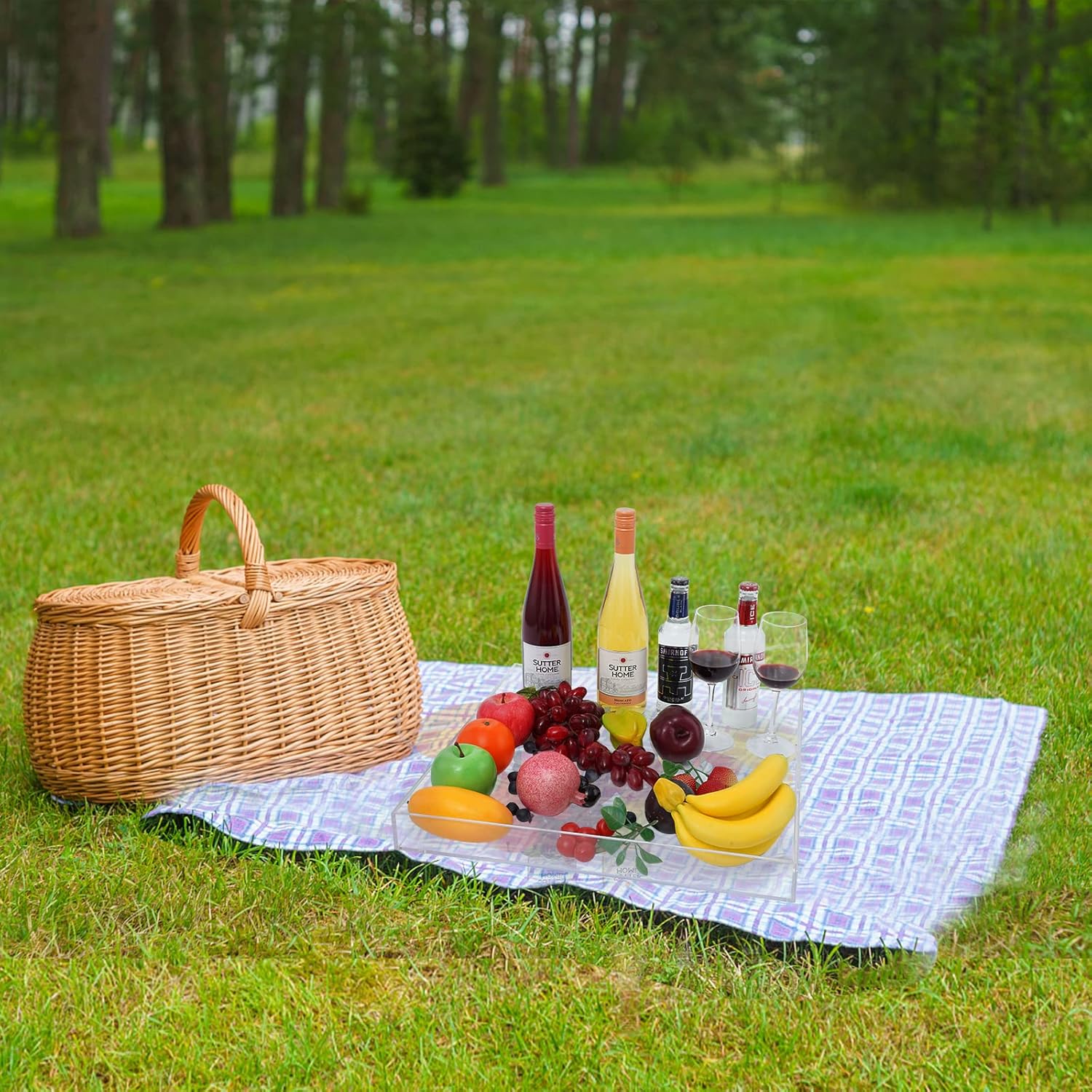 22×22 Inches Oversize Extra Large Sturdy Clear Acrylic Serving Tray King Size Decorative Big Ottoman Trays with Cut Out Handles Water Proof Bed Tray Coffee Counter Top Organizer