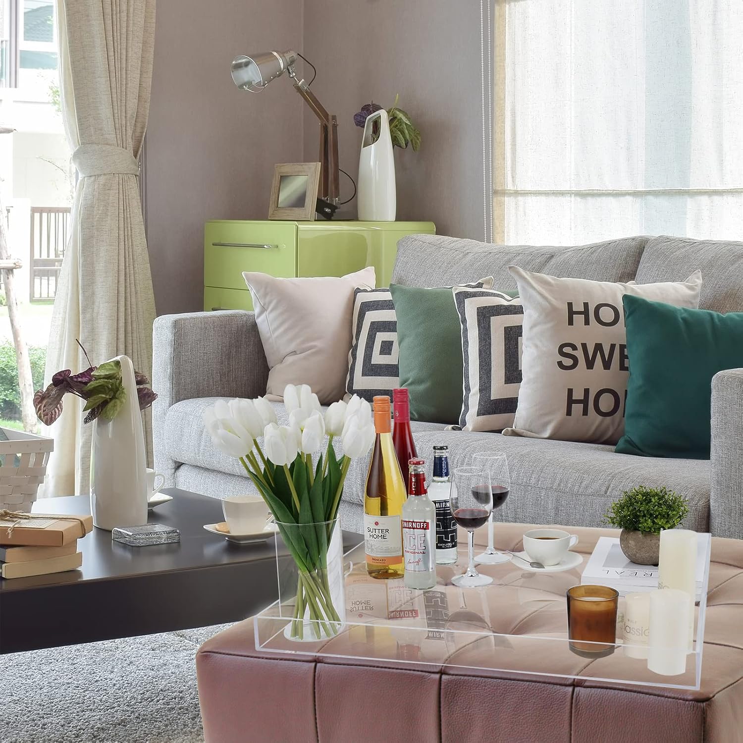 • Material: Our serving trays with handles are made of glossy white acrylic, Which is high quality and sturdy, The acrylic is a environment friendly material, Our square extra large acrylic trays are perfect ottoman trays for living room