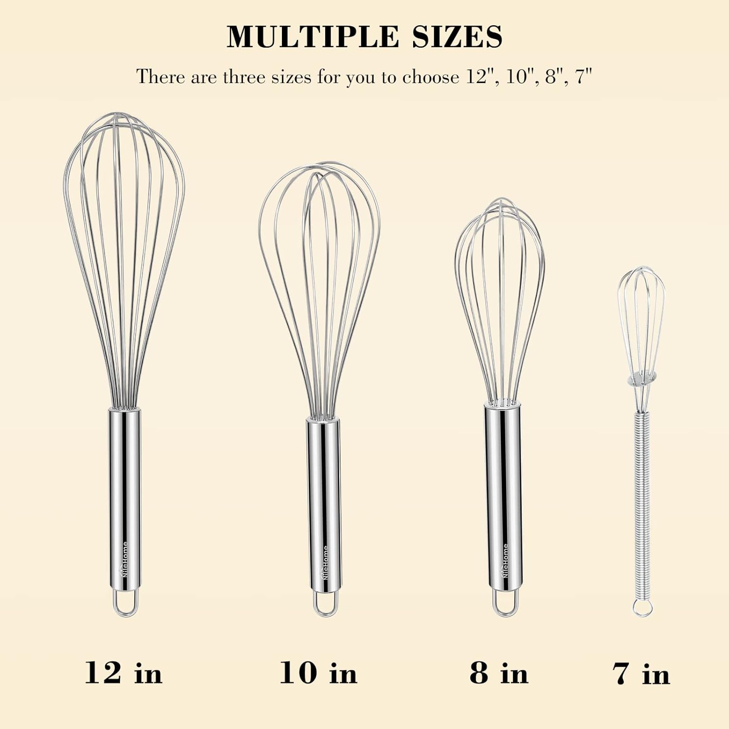 NileHome Stainless Steel Whisk Set 8" 10" 12" Kitchen Whisk Kitchen Wisk Wire Whisks for Cooking, Whisking, Blending, Beating, Stirring-4 Pack