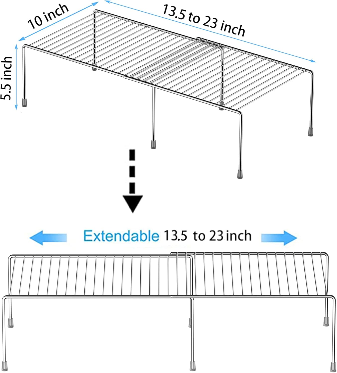 • EXPANDABLE DESIGN: The length of this shelf can be adjusted to your desire. It can vary from 13.5 inches to 23 inches in length depending on how you want to arrange your space. This product is tailor-made for customers who faces difficult product selections. Size:13.5 to 23 L x 9.4W x 5.5 H inch.