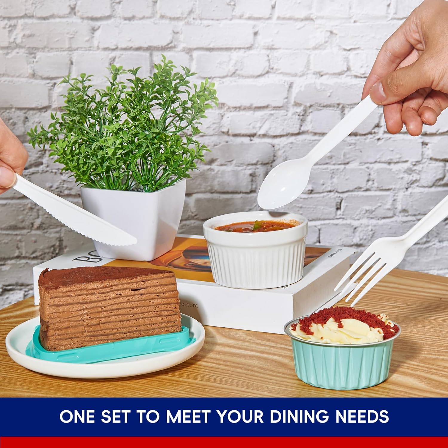 • Premium Material: Our white disposable cutlery set is made from plastic, making it an easy and hygienic way to dispense cutlery for any event! Perfect for restaurants, food trucks, cafeterias, and food delivery services such as uber eats, GrubHub, Doordash, etc.