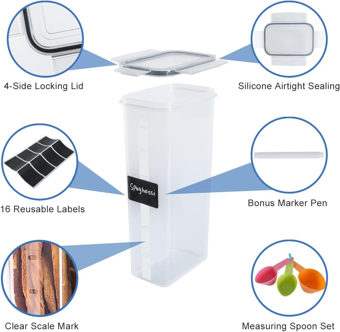 Airtight Food Storage Containers with Lids, Clear Pantry Canister Set for Kitchen Organization, Stackable Organizers for Flour, Sugar, Cereal, Rice, BPA Free Plastic 24 Pack with Different Sizes