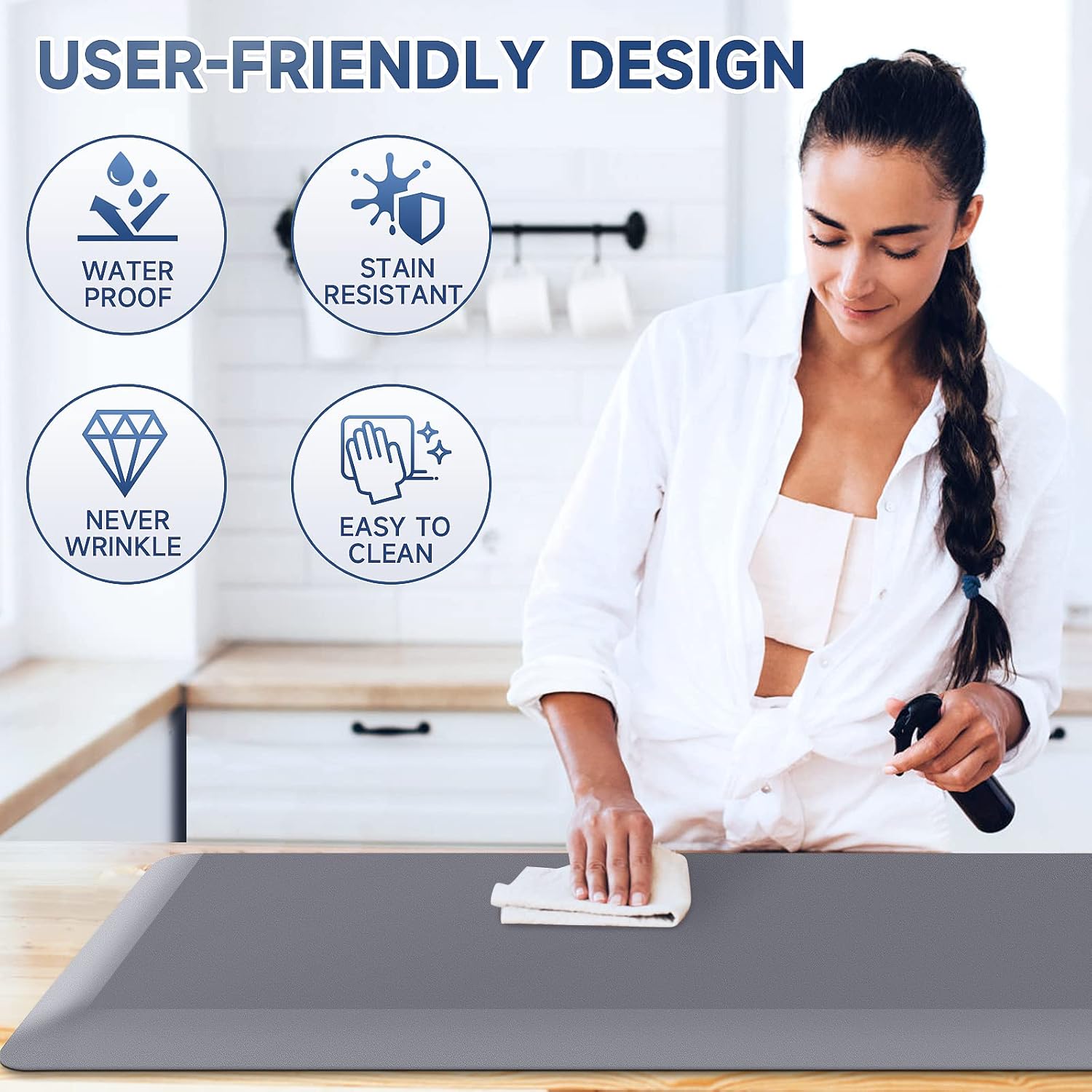 • 【Easy to Clean】The surface is made of premium PVC material, which is water & stain resistant. Water, oil, sauce, or any kind of liquid can be simply wiped off with a damp cloth with no stain residue on the mat