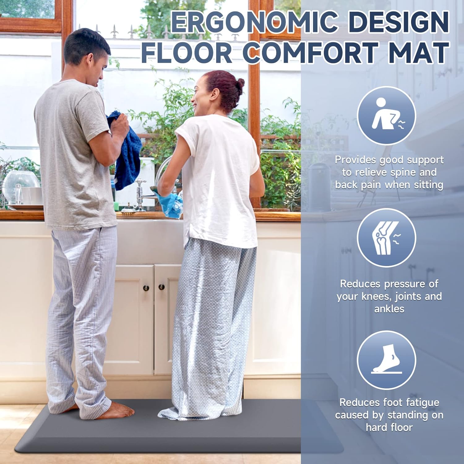 • 【Anti-Fatigue】Comfort floor mat provides comfort when standing. Reduces pressure on knees and ankles. Relieves back and spine pain when standing and relieves fatigue caused by standing for long periods