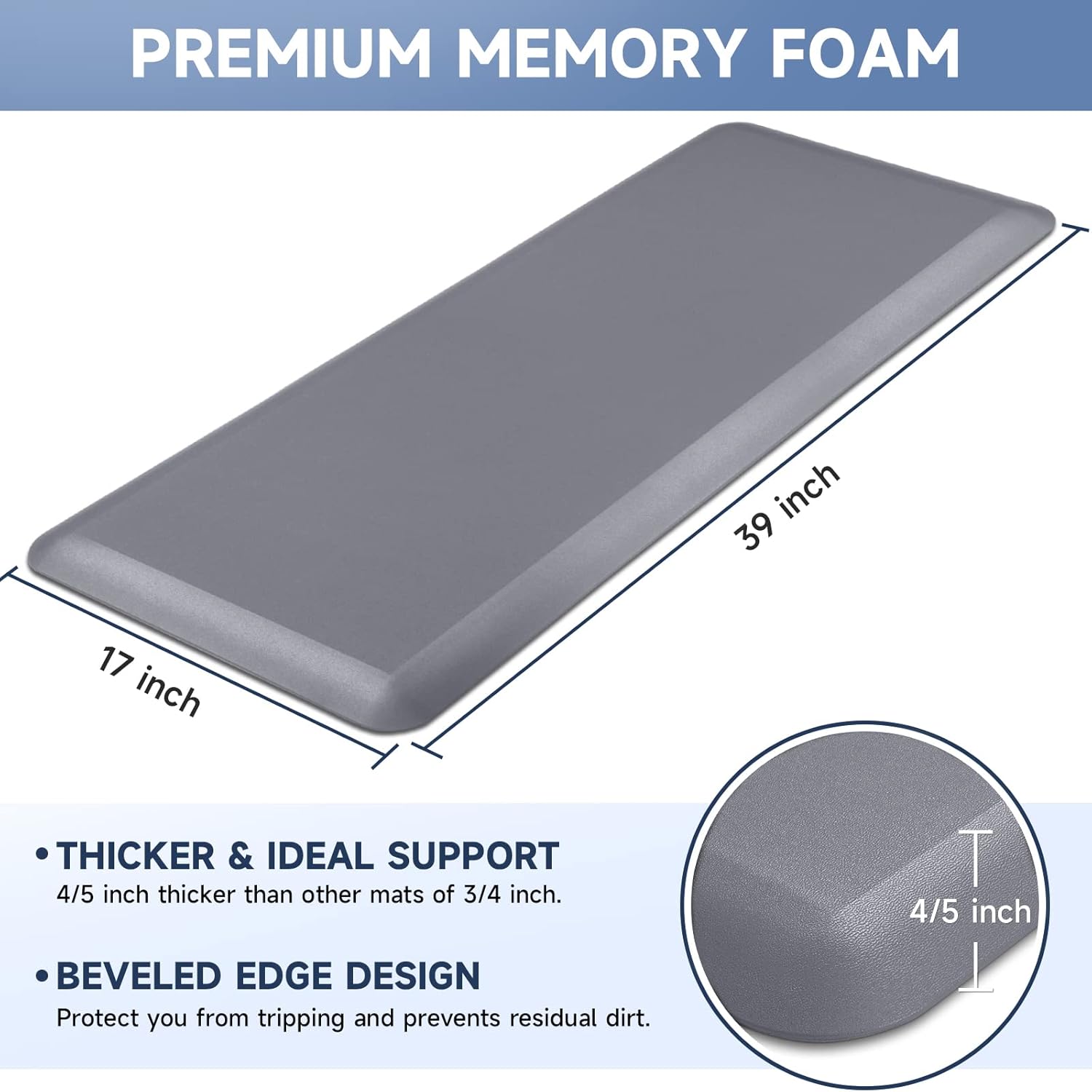 StepRite 4/5 Inch Thick Kitchen Mat Anti Fatigue Mat Kitchen Rugs Kitchen Decor Non-Slip, Stain Resistant, Waterproof Kitchen Mats Desk Mat for Kitchen, Office, Workshop, Grey, 17'' x 39''