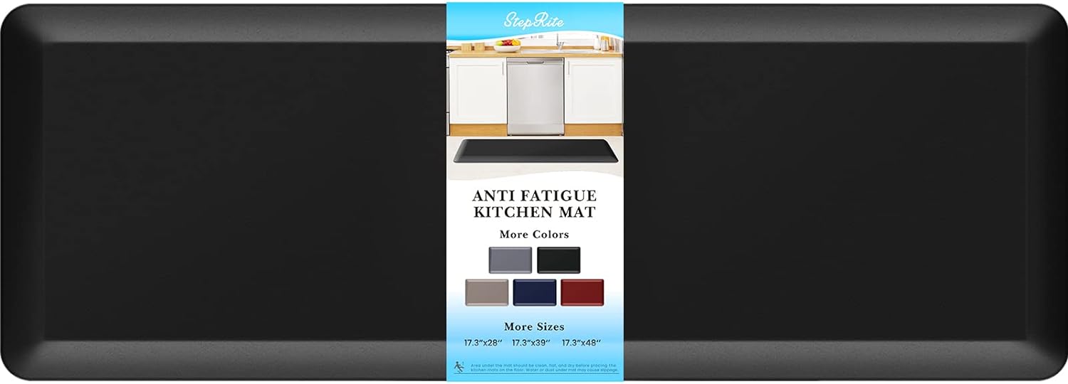 StepRite 4/5 Inch Thick Kitchen Mat Anti Fatigue Mat Kitchen Rugs Kitchen Decor Non-Slip, Stain Resistant, Waterproof Kitchen Mats Desk Mat for Kitchen, Office, Workshop, Black, 17'' x 47''