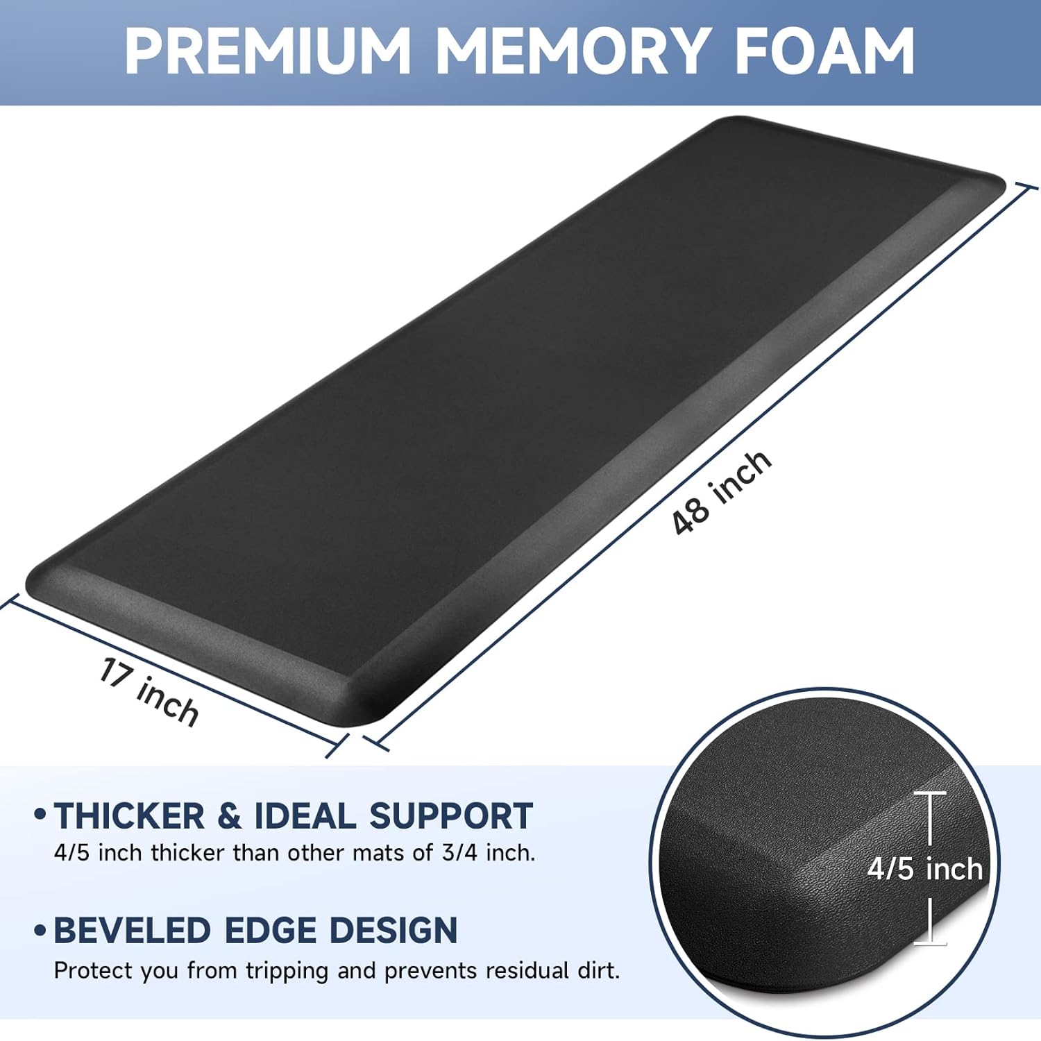 • 【Thicker Mat】The StepRite kitchen mat is made of 4/5 inch thick memory foam for better support and comfort when standing. Measured as 17*28 inches. Suitable for kitchen, office, laundry room or any high-traffic area