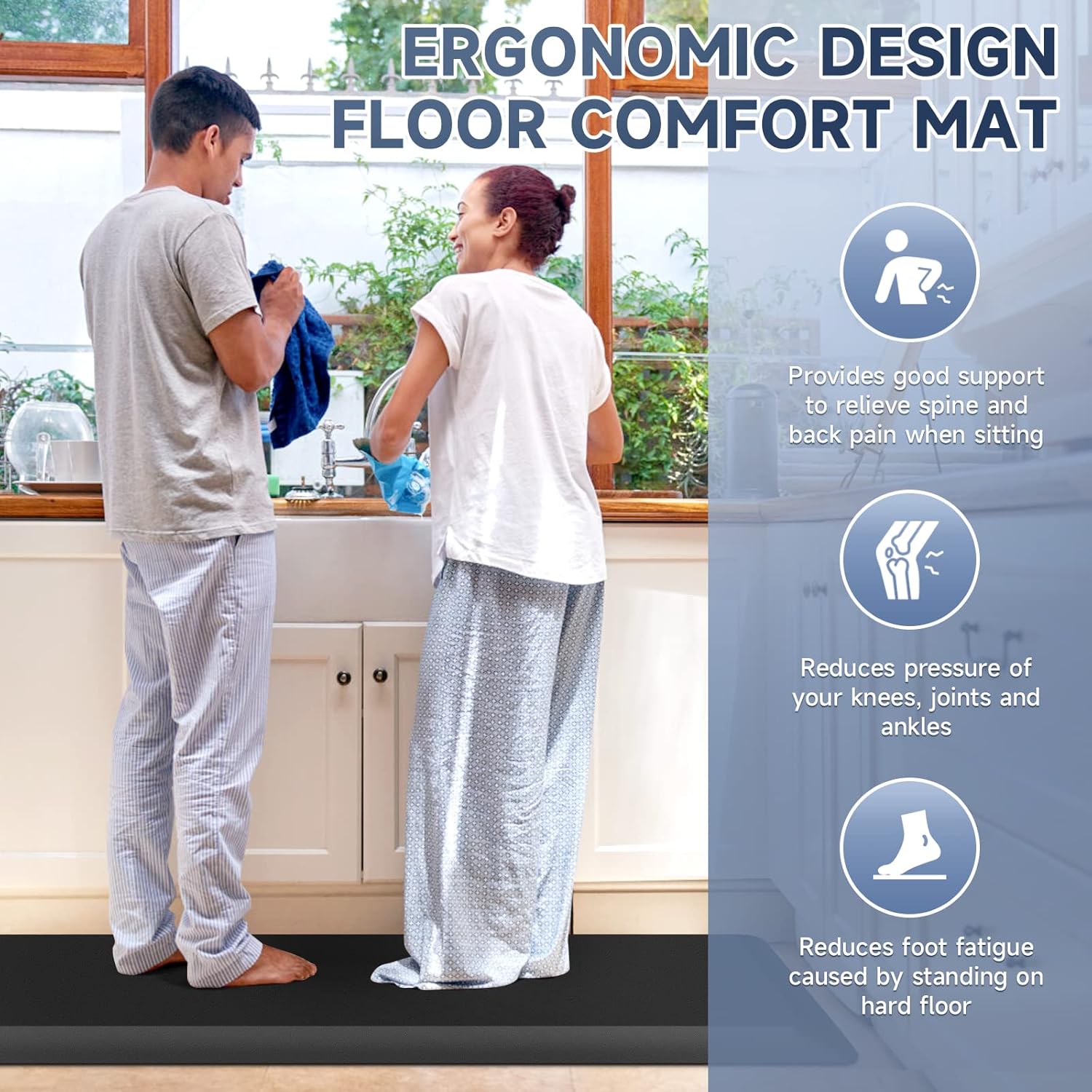 • 【Anti-Fatigue】Comfort floor mat provides comfort when standing. Reduces pressure on knees and ankles. Relieves back and spine pain when standing and relieves fatigue caused by standing for long periods