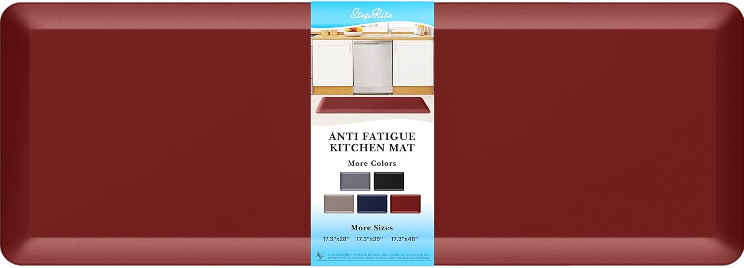 StepRite 4/5 Inch Thick Kitchen Mat Anti Fatigue Mat Kitchen Rugs Kitchen Decor Non-Slip, Stain Resistant, Waterproof Kitchen Mats Desk Mat for Kitchen, Office, Workshop, Red, 17'' x 47''