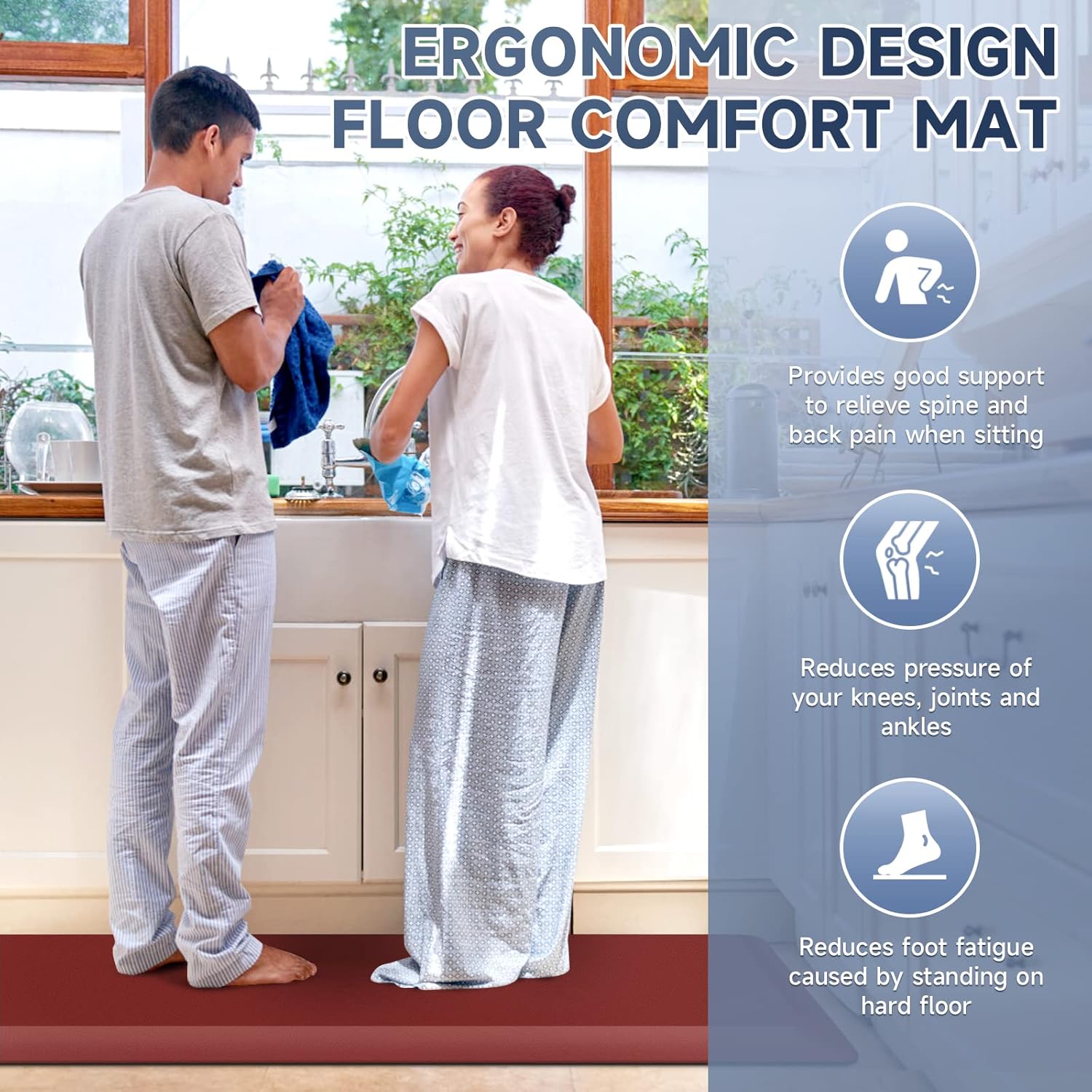 • 【Anti-Fatigue】Comfort floor mat provides comfort when standing. Reduces pressure on knees and ankles. Relieves back and spine pain when standing and relieves fatigue caused by standing for long periods